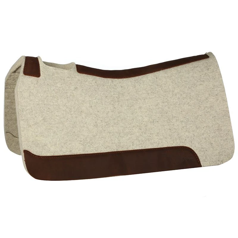 The Roper 5 Star Saddle Pad is our wide pad. It is a great pad for Roping, Ranching, Trail Riding, and Shorter Saddles. The 100% pure virgin wool felt wicks away moisture, cleans up easily and stabilizes your saddle with limited cinching. Wear leathers provide protection and durability. Hand-made in the USA!