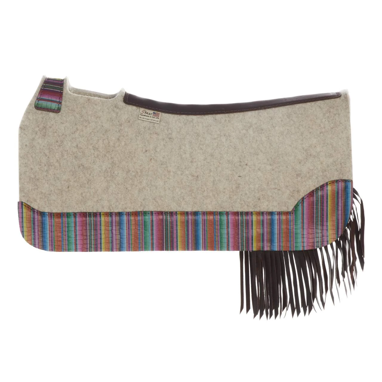 - The Barrel Racer 7/8 Inch Natural Felt Saddle Pad with Multi Colored Serape and Fringe Wear Leathers!