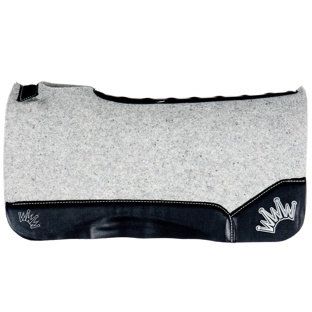 The Kush Collection saddle pad is made from 100% high-quality, washed and pressed wool that is 136 ounces per square yard. It is durable and resistant to compression, yet soft and flexible. Properties of this pad allow it to absorb moisture, which aides in removing heat from the horse’s back. This pad is light gray in color, and comes in 1-1/4 inch thickness