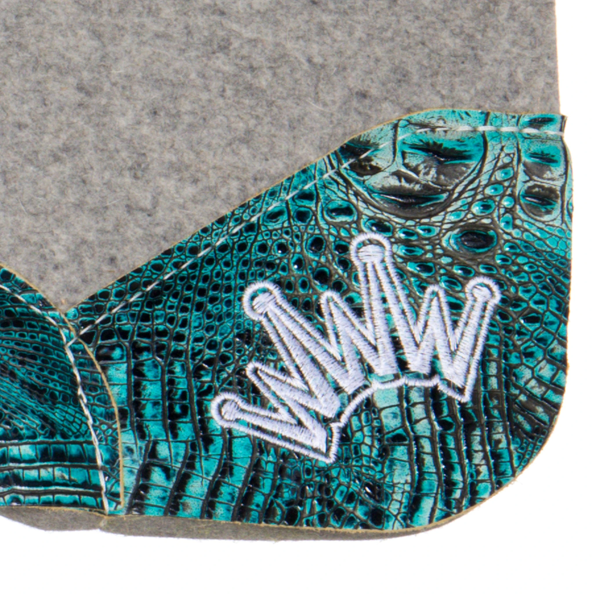 - The wear leathers on this pad are constructed with fashionable and vibrant embossed sea turquoise crocodile wear leathers.