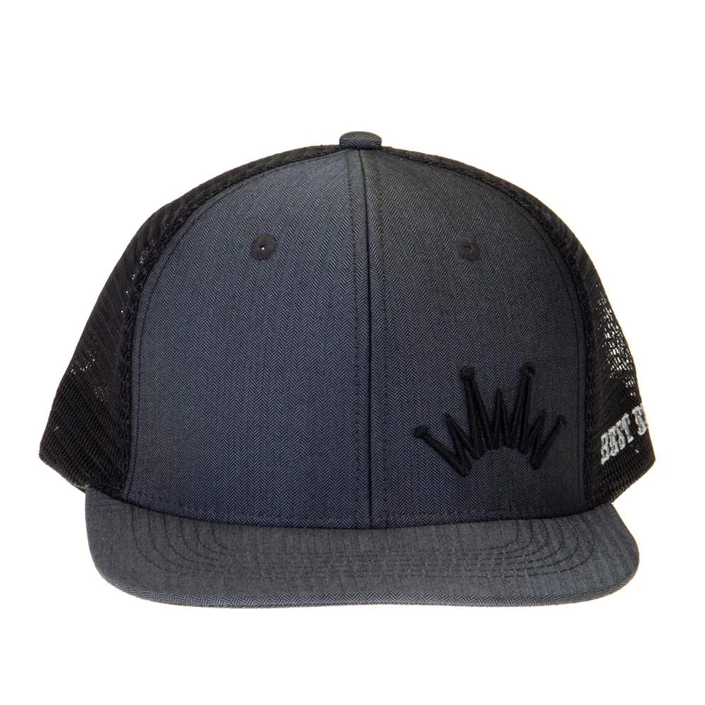 - This snapback cap features a grey front, black mesh back, and black embroidered Best Ever crown logo.