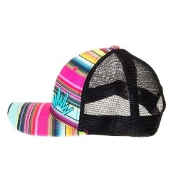 The Best Ever Saddle Pads Pink Serape Embroidered Logo Mesh Back Cap is the perfect accessory for those who love Best Ever saddle pads and the vibrant pink serape print on the front! This snapback cap features a black mesh back and a turquoise/black embroidered Best Ever crown logo. Designed with breathability and comfort in mind, the Best Ever Mesh Back Caps feature a mesh back that allows for air flow, making it especially beneficial for hot weather or working and riding outdoors. Made of high-quality materials like cotton or polyester, the front of the cap is embroidered with the Best Ever Crown logo or Best Ever name. These stylish caps are available in a variety of colors and styles, making them a popular choice among horse enthusiasts and riders. The product number for the Pink Serape Embroidered Logo Mesh Back Cap is BE-SERAPE2.