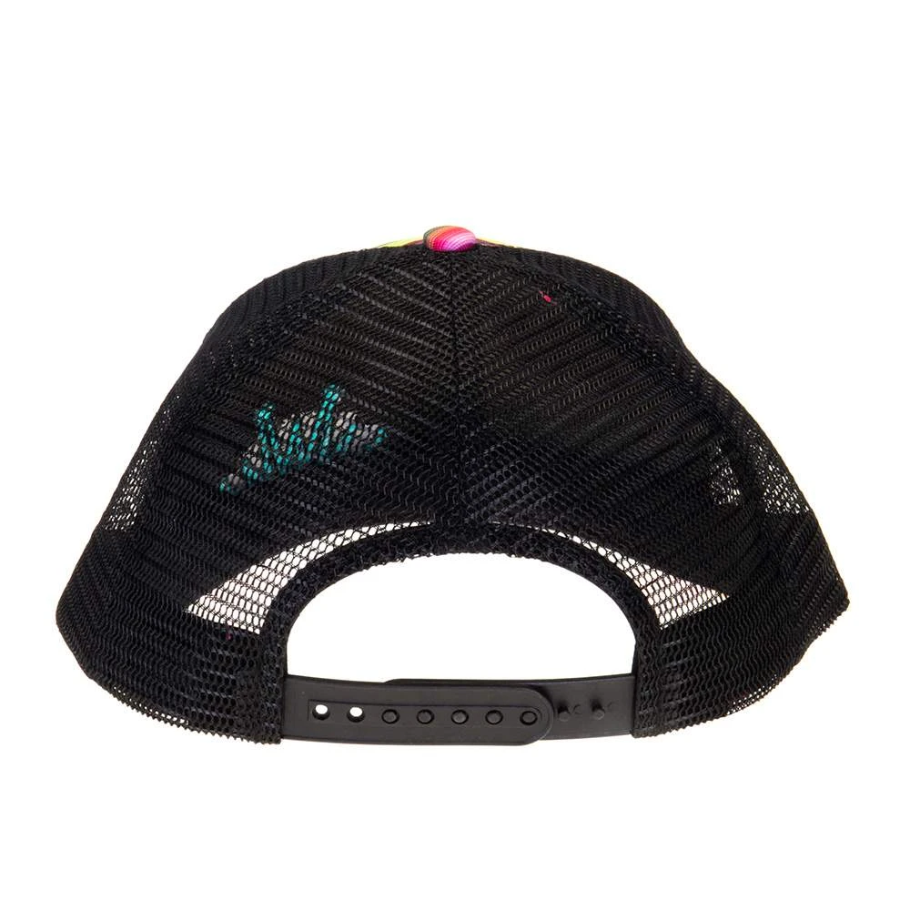 - This snapback cap features a vibrant pink serape print on the front, black mesh back, and turquoise/black embroidered Best Ever crown logo.