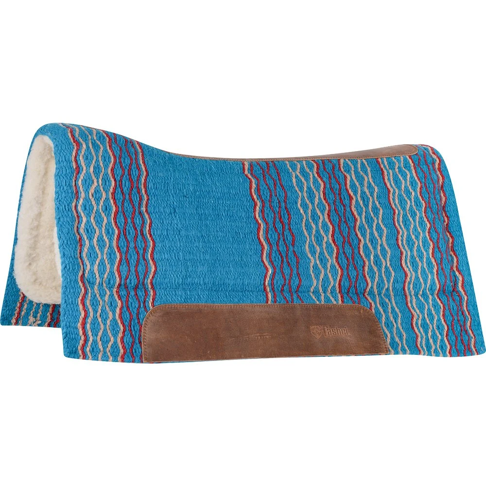 Cashel Blanket Top Performance Felt Pad is made of 3/4″ pressed felt with merino fleece bottom and blanket wool top. Features distressed leather wear leathers. Available in 6 colors.