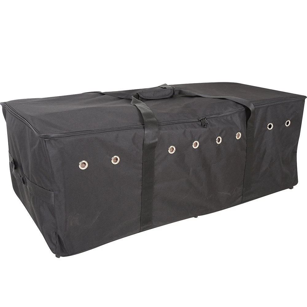 The Cashel hay bale bag keep things neat and tidy on the go. Made of tough, water resistant nylon that protects hay from the elements and keeps your trailer or barn clean. Sippers on three sides provide effortless hay loading and padded straps make it easy to carry. Black. Large Size: 50″x24″x18″.