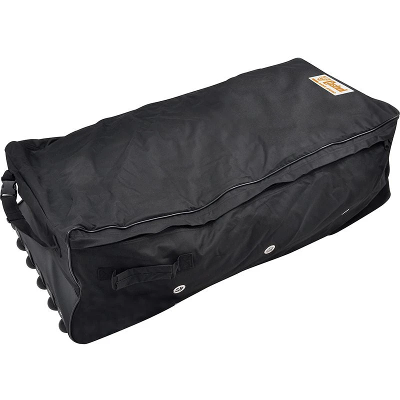 Made of tough, water resistant nylon, with two sizes to fit a two strand or three strand hay bale. Heavy duty zipper on three sides for easy loading. Heavy duty plastic wheels and nlylon handle provide easy transport. Convenient side handles for loading in the truck.