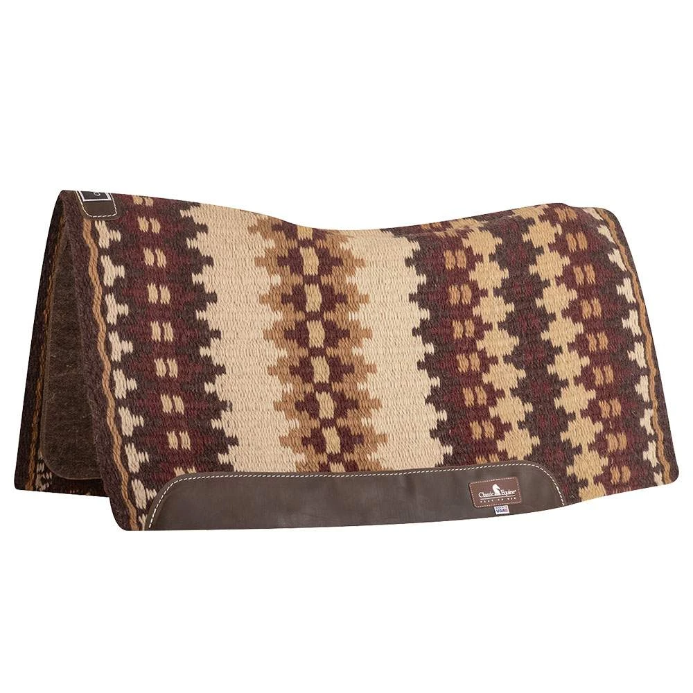 This Classic Equine Contour Wool Top Alpaca Saddle Pad features a 100% wool blanket top, and an alpaca felt bottom that’s constructed of a special blend of alpaca and wool fibers with incredible softness, cushion, and flexibility while retaining durability. Contoured to fit the horse’s back. Cutout over withers reduces rubbing. Blanket top folds back over withers for discreet shim placement. 3/4 inch thickness, 34in x 38in.