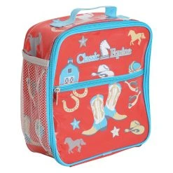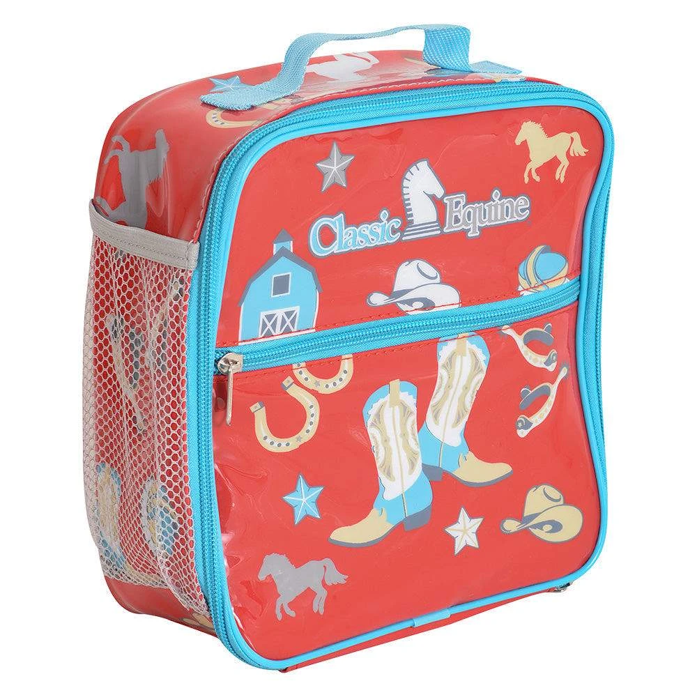 This Classic Equine Kid’s Lunch Box is perfectly sized for little hands! Features a fun western print, and is a must have for picnics, school, rodeos, trips, and more. Zippered front pocket, mesh interior pocket, insulated and easy to clean.