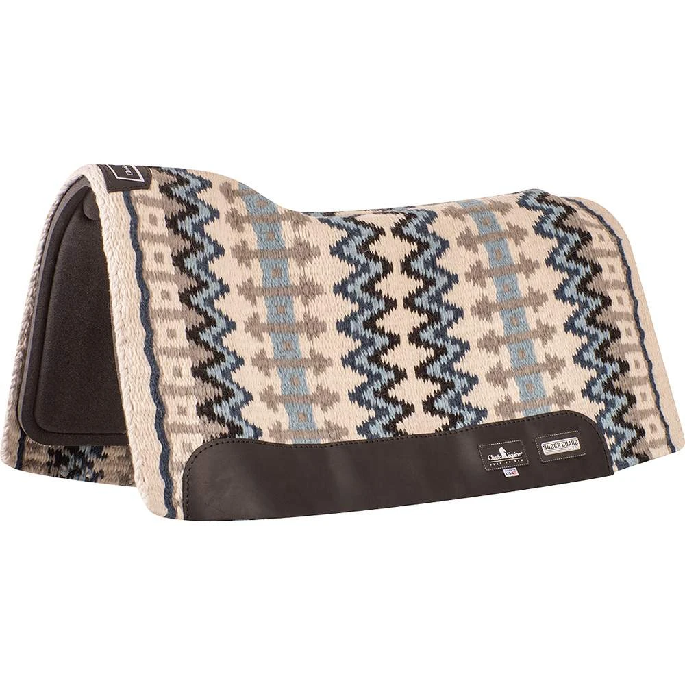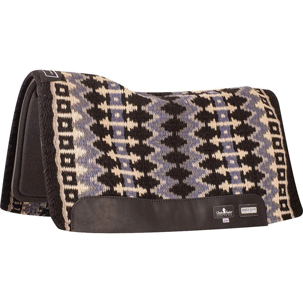This Classic Equine ShockGaurd Blanket Top Pad is 100% wool, can be folded back for shim placement, if necessary, and lays clean and flat against the pad. It’s made with a revolutionary XPF foam that is open celled, breathable, lightweight, and durable with a self-adjusting profile. This ShockGaurd saddle pad provides maximum impact protection throughout the entire pad surface. Pliable and easy to clean after extended use.