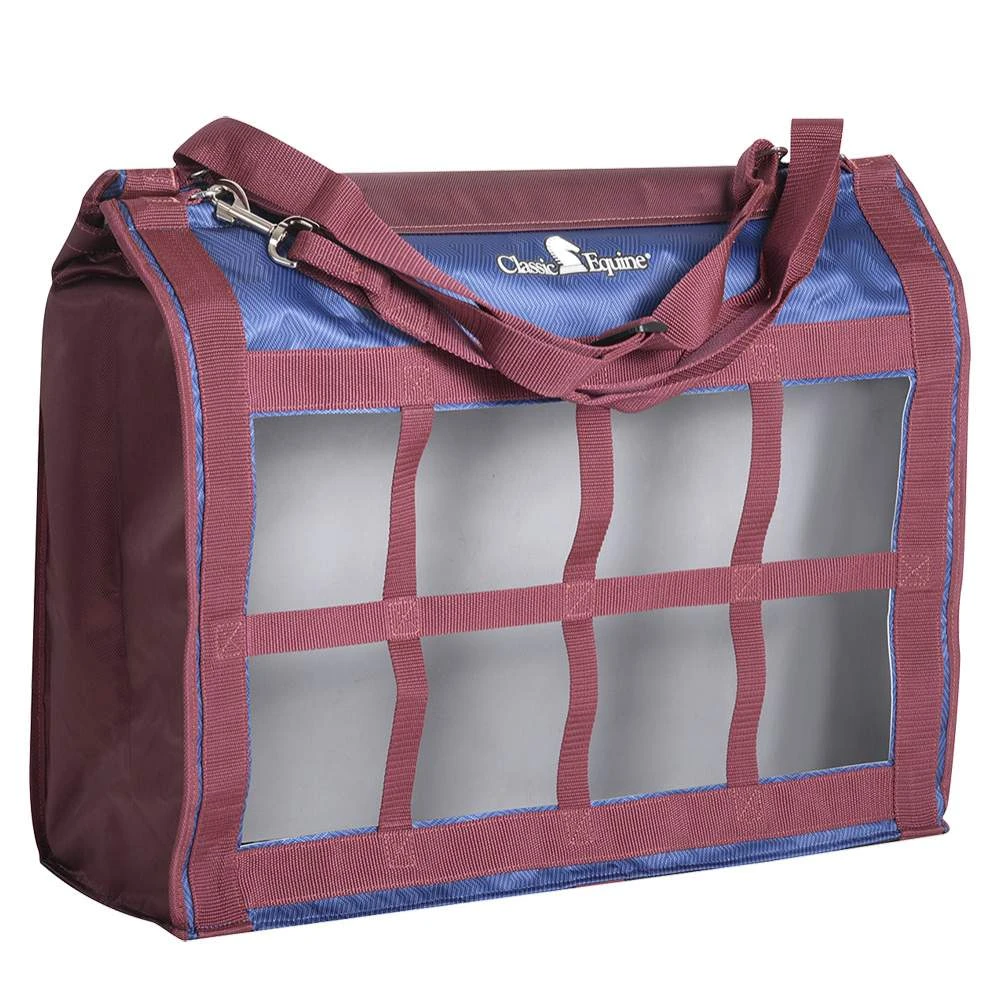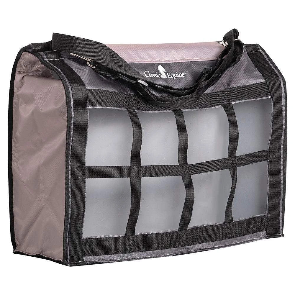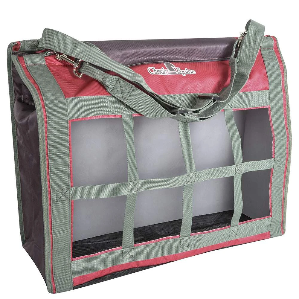 This Classic Equine Top Load Hay Bag is top loaded and extra large, making it easy to fill. Extended top flap has a hook-and-loop closure so hay can’t be drug out the top. Hay must be pulled from the webbed squares in front, lessening waste. Long adjustable straps with a snap make it easy to hand almost anywhere. Made of tough poly for durability with a mesh bottom that allows dust and dirt to fall through.