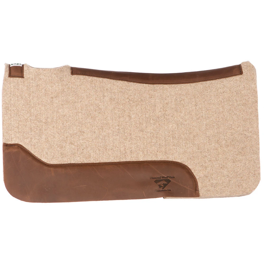 Keep your horse comfortable with this 1″ Contoured Cowboy Diamond Wool Pad. This pad is a unique felt that is manufactured with a tan Wool blend top combined with 100% Virgin Brown Wool bottom. Distressed leather reinforces the contoured spine. Made with a wither relief notch and finished with wear leathers.