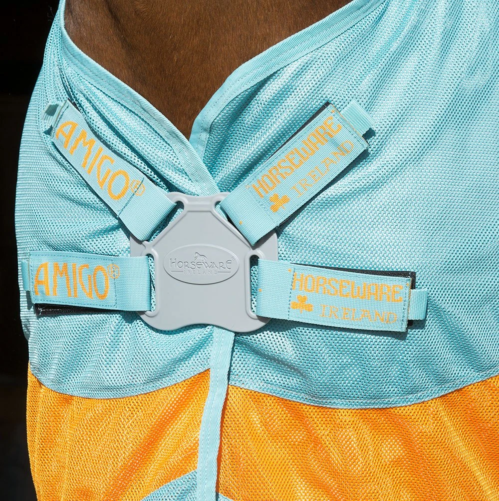 The Evolution Fly Sheet utilizes an innovative and super light disc front closure with the latest in insect technology. Insects respond differently to different colors, most cannot perceive orange or aqua, because their vision centers on different sections of the electromagnetic spectrum, making these colors natural deterrents. The Evolution sheet incorporates these colors with the breathable, lightweight knitted polyester net fabric which is soft, absorbent, and has sun reflecting properties that offer UV protection.