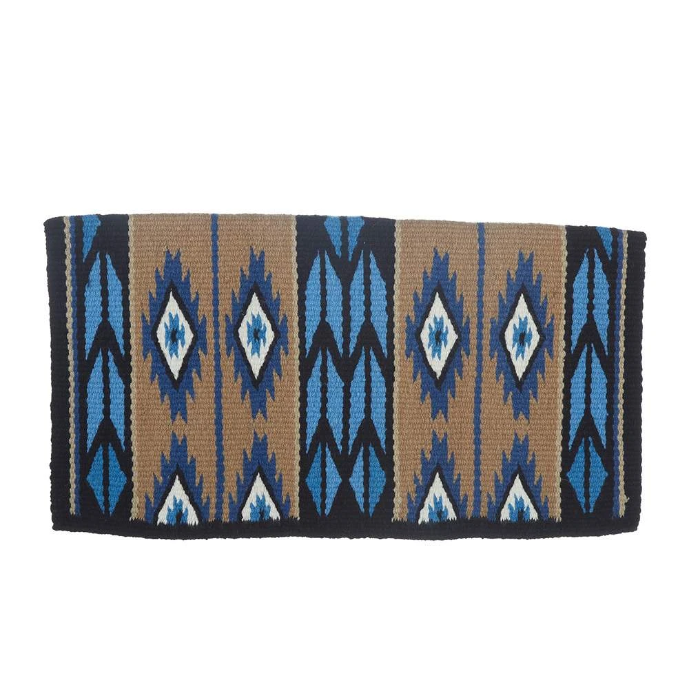 The New Flying Eagle Blue Wool Saddle Blanket  by Mayatex is a quality Western saddle blanket made with beautifully patterned 100% New Zealand wool. Sized 38″x34″ to allow pattern to show from under the saddle. Tightly woven wool allows air flow and absorbs moisture. 5.0lbs.