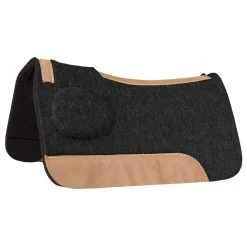 Black contoured orthopedic grade felt saddle pad with Poron XRD and memory foam build-up is specifically designed to relieve shoulder strain and pressure. The CorrectFit saddle pad helps with hard to fit conformation, high withers, narrow shoulders or asymmetrical muscle development. Measures 31″ x 30″ x 1″.