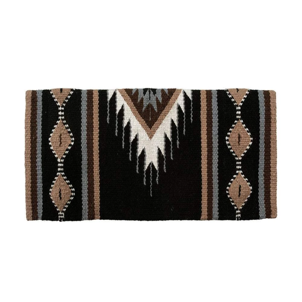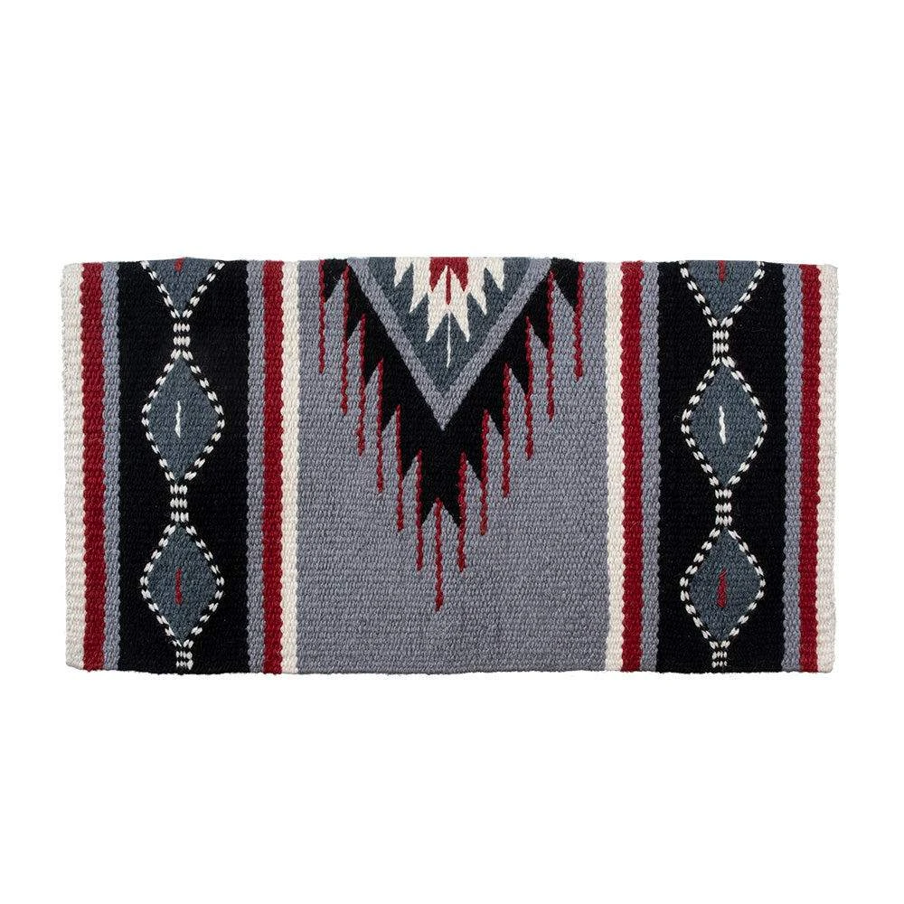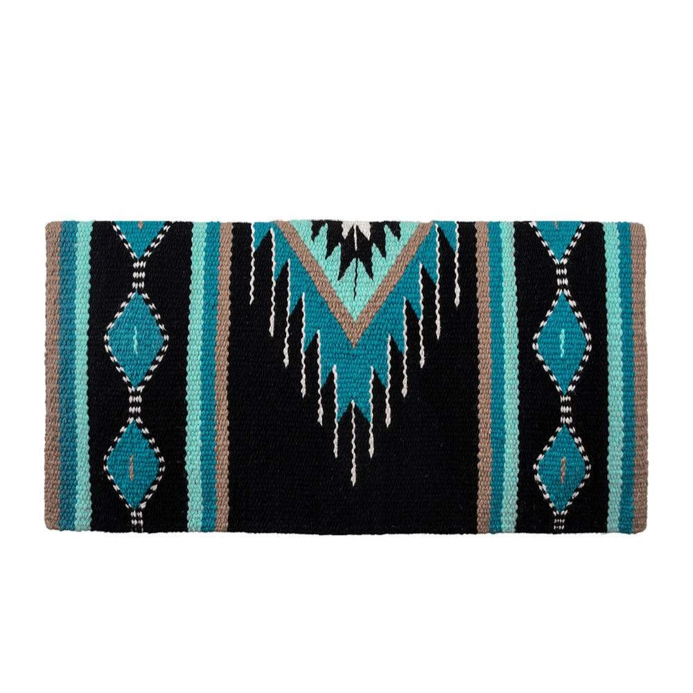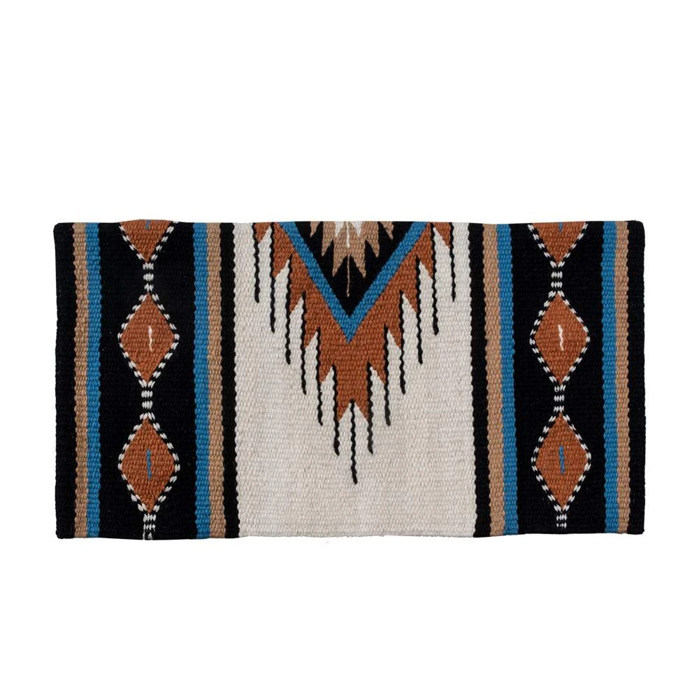 This new Del Rio Saddle Blanket by Mustang Manufacturing is custom designed with hand woven New Zealand wool. This saddle blanket is perfect to go over your daily work pads and make a statement in the show pen! New color variations and designs available. 36″ X 34″ 5007