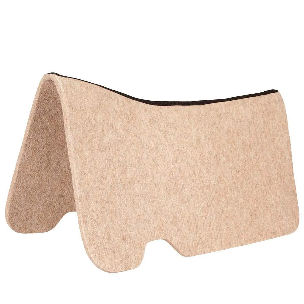 Protect your horse with a contoured pad protector from Mustang. This tan pad is made of wool and will fit to any horse.
