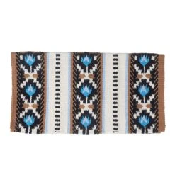 The NRS Exclusive Tulip Pattern Tan/ Turquoise Color Saddle Blanket is a unique design to go directly under your felt pad in the arena or on top of your felt pad in a show ring. This blanket is hand woven out of New Zealand wool. We have a limited supply of this wool blanket!