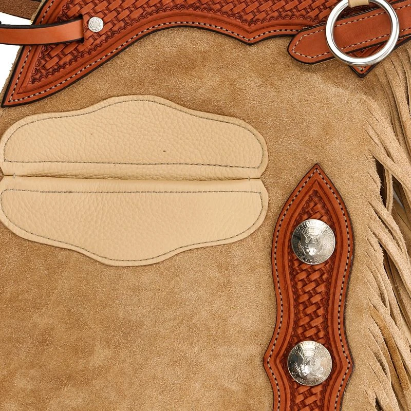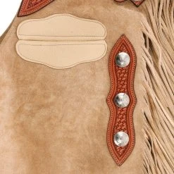 These parchment chinks are super handy. They have a welt pocket and a tie string ring.