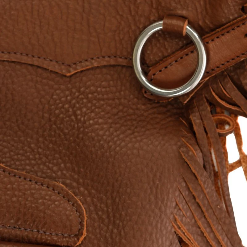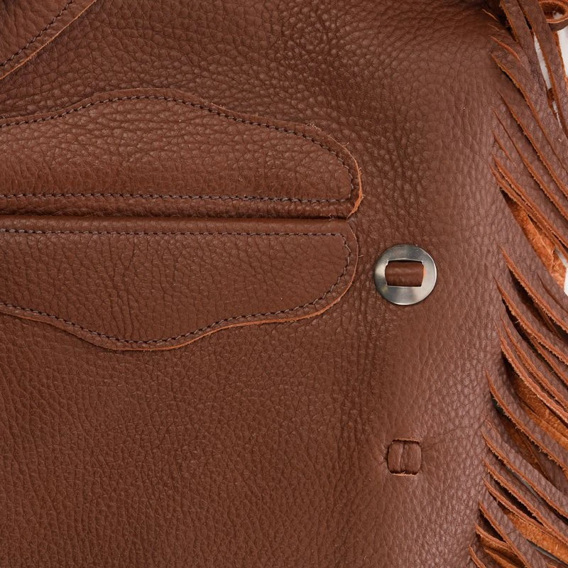 Handmade in the USA using heavy weight leather for durability in the toughest of extremes. Hand-sewn welt pockets allow for quick and easy access even when in the saddle. Chaps and chinks come with stainless rings in order to easily pack a tie-string. Mounted with stainless slotted conchos.