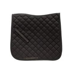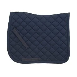 A traditional dressage saddle pad that is practical and an excellent choice for the show ring. It ismade of cottong to aid in a comforatable ride. It features anti-sweat mesh lining, synthermax poly-fiber lining, girth and billet keepers.