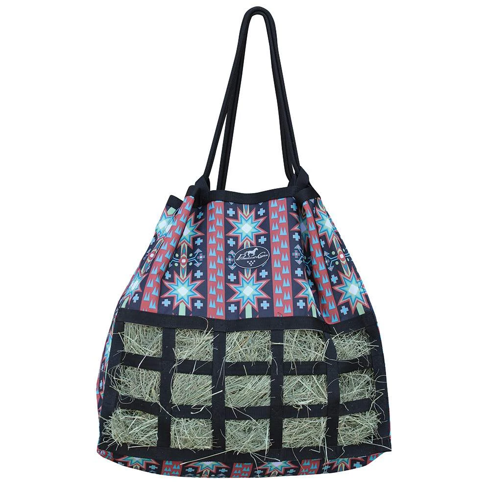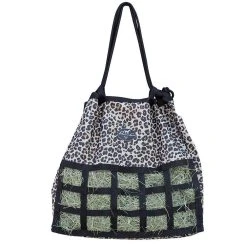 Free of any hardware, this medium feed hay bag is specially designed not to scratch your trailer. The top draw string closure opens fully to allow easy top loading, as well as height adjustability and is complete with reinforced webbing loops and a heavy duty rope. The medium feed encourages horses to eat slowly for proper digestion. 22in tall, 23in wide, 3-1/2in x 2-1/2in openings.