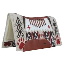 Custom designed New Zealand wool hand-woven blanket top is expertly contoured with leather reinforced spine and wither. The 3/4″ interior is an Air Ride shock absorbing insert for impact protection and comfort, while the high quality merino wool bottom protects and wicks away moisture. 33×38