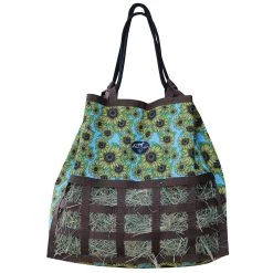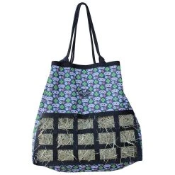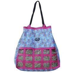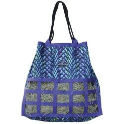 Free of any hardware, this medium feed hay bag is specially designed not to scratch your trailer. The top draw string closure opens fully to allow easy top loading, as well as height adjustability and is complete with reinforced webbing loops and a heavy duty rope. The medium feed encourages horses to eat slowly for proper digestion. 22in tall, 23in wide, 3-1/2in x 2-1/2in openings.