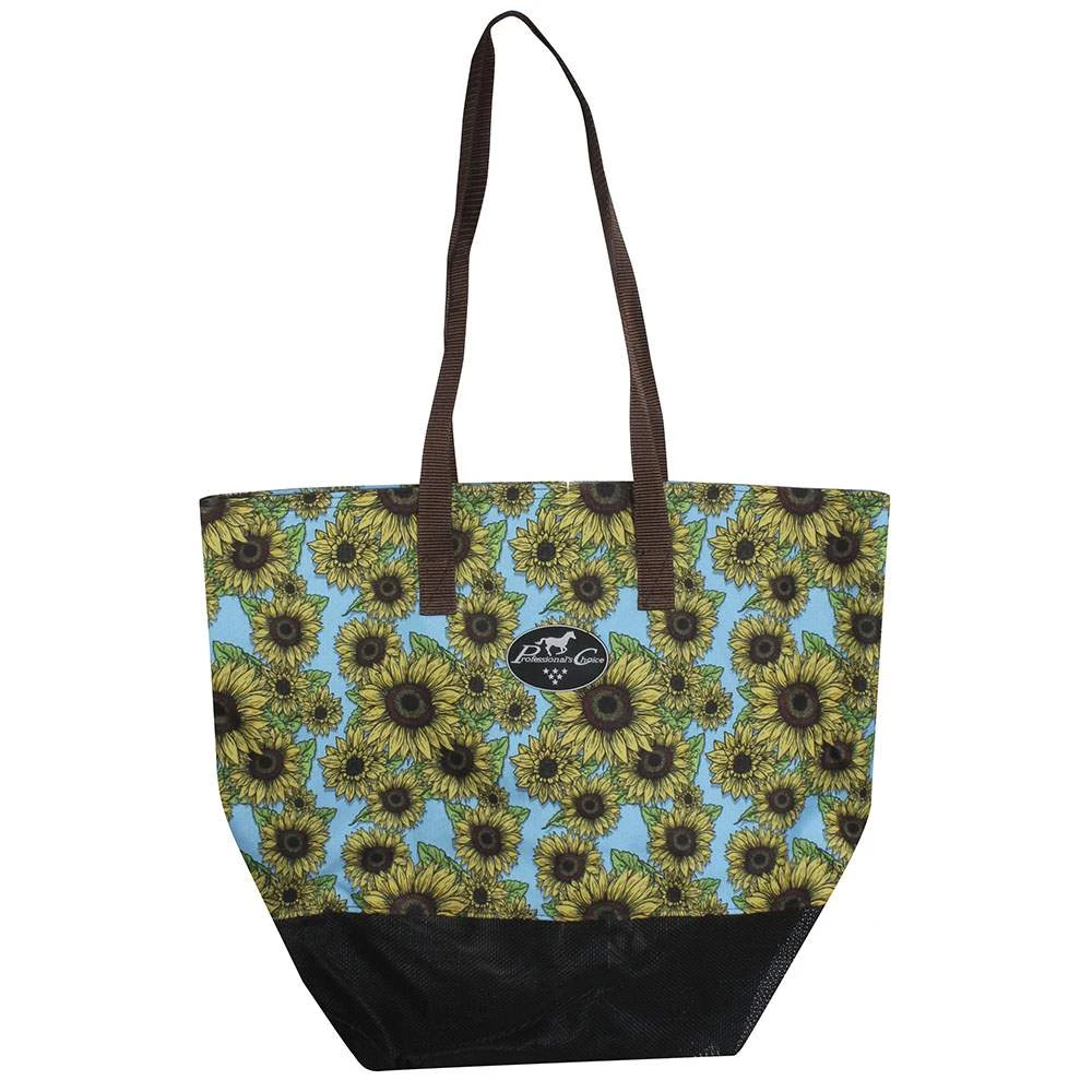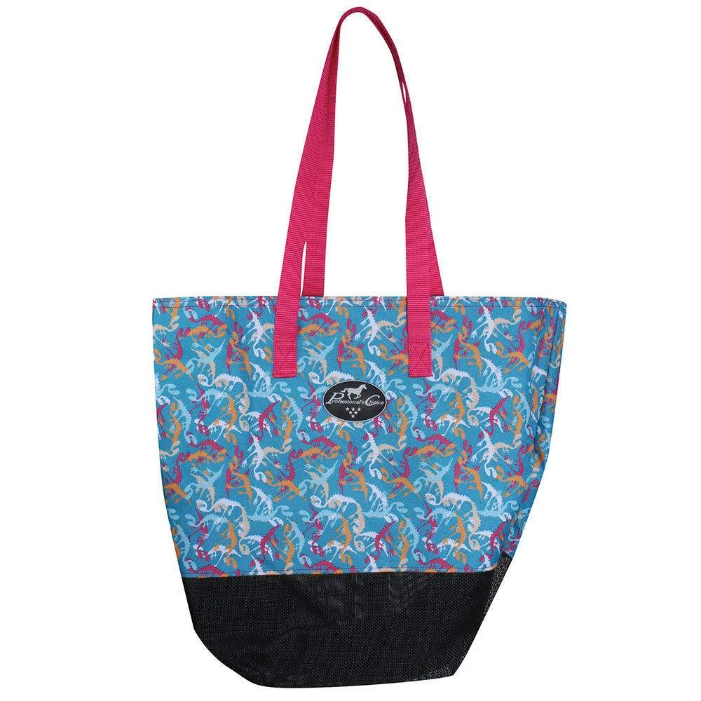 Roomy tote bag with mesh bottom for debris to fall through. Perfect for everyday use to carry brushes, grooming supplies, and splint boots! This is a very popular tote bag that is versatile and fashionable! PC-TOTE-21