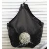 The top loading hay bag features an extra large opening, making it easy to load. The ten diagonal openings regulate the amount of hay taken out at a time, minimizing waste and encouraging a horse to eat more slowly. The mesh bottom allows dirt and debris to fall through. Top flap ensures hay stays in designated area. Two reinforced, adjustable straps for easy hanging in any desired location. Folds flat for convenient storage.