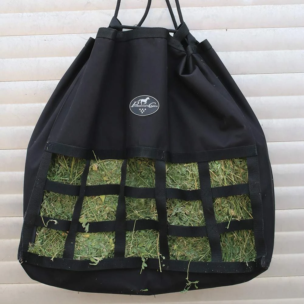 Free of any hardware, this medium feed hay bag from Professional’s Choice is specially designed not to scratch your trailer. The top draw string closure opens fully to allow easy top loading, as well as height adjustability and is complete with reinforced webbing loops and a heavy duty rope. The medium feed encourages horses to eat slowly for proper digestion.Â