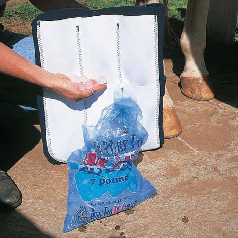 Our Six Pocket Ice Boot is convenient for icing from just below the knee or hock, down to the pastern. It has six inner elastic pockets and five hook & loop fasteners. 30-Day money-back guarantee/six-month warranty or as required by law. Available in black only. Sold in pairs. Universal Size, 18.5″ tall