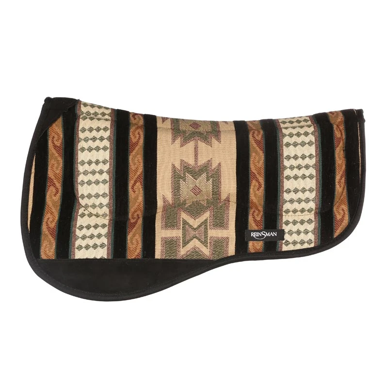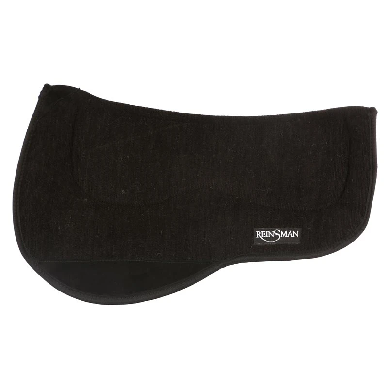 This contoured saddle pad is breathable and the bottom is made of Tacky Too Material. This material makes it non-slip, light weight and provides superior padding. This pad weighs 40% less than traditional pads and wicks moisture away from horses back. It dissipates moisture with air flow, reduces heat build up, and dries extremely quick after each use.