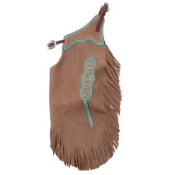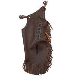 These NRS leather chinks are perfect for your little cowboy or cowgirl! Made in the USA with high quality, premium leather, they are sure to last. Adjustable waist with double buckle closures. Snap leg closures. 21 inch outseam from top of waist to top of fringe. 4 inch fringe.