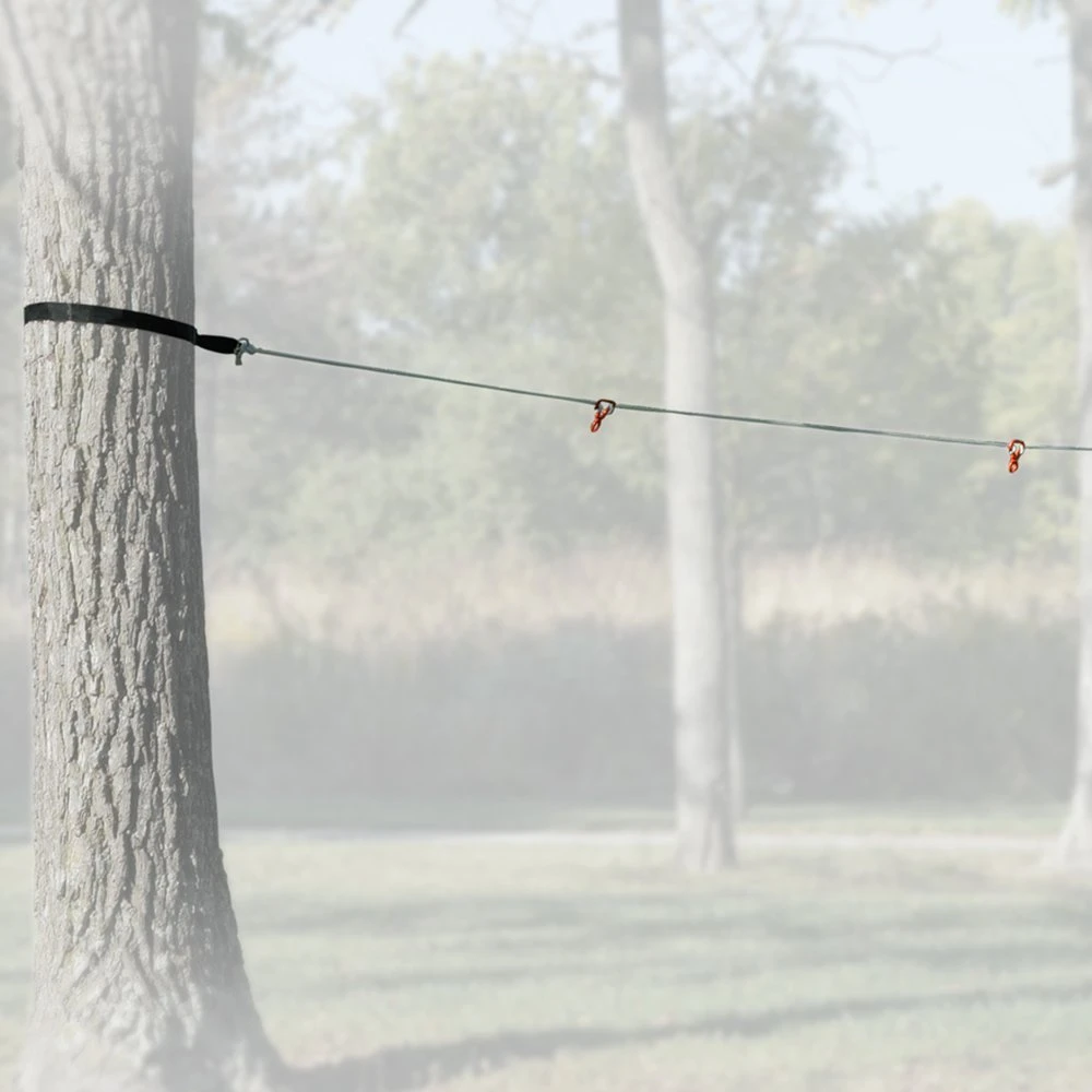 Safely secure your horse when trail riding/camping where there are no hitching rails. 2 horse swivel No-Knot picket line kit: 30 ft. long 3/8” diameter nylon rope, 2 tree saver straps, 2 swivel No-Knot picket line ties, easy to follow set-up instructions and zippered nylon storage bag.