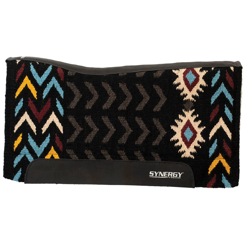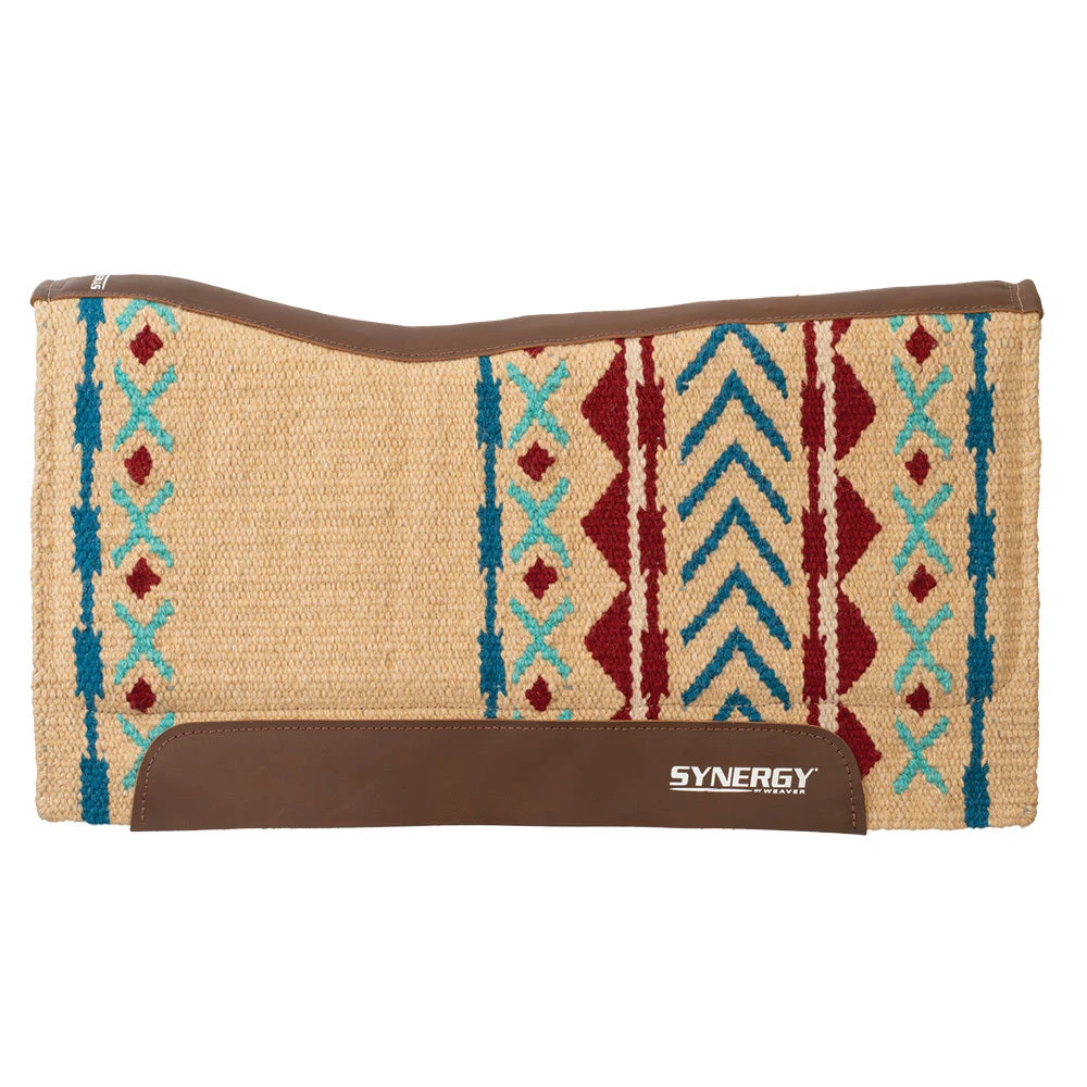 This Weaver Leather Pad is contoured to provide an anatomically-correct fit for your horse’s back and to keep the center of the pad lifted into the saddle gullet for increased airflow. Made from shock-absorbing, ventilated EVA Sport Foam inserts that are compression resistant, will not degrade over time, and have proven orthopedic value. The handwoven 100% New Zealand wool topper is complimented by premium oiled top grain wear leathers that provide years of durability. 1″x32″x34″.